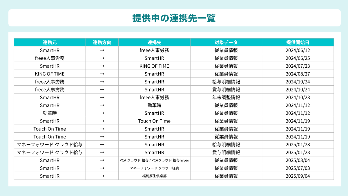 SmartHRと各種外部システムとの連携を随時拡充しています。